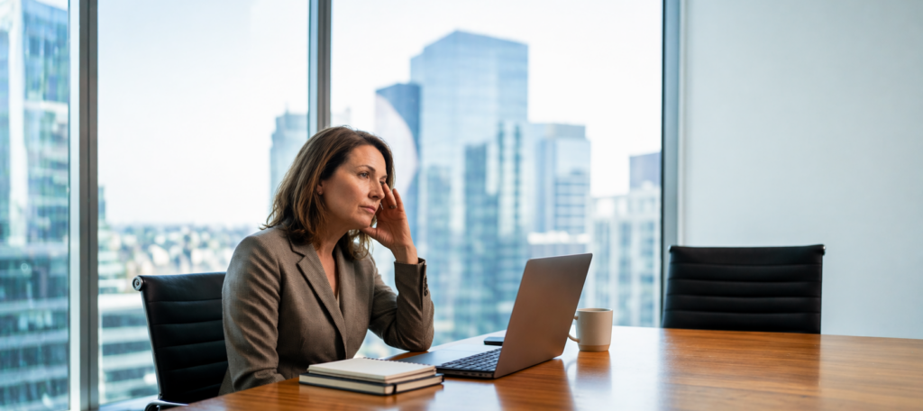 Menopause does not occur in isolation. Midlife often coincides with peak professional responsibility and caregiving demands.